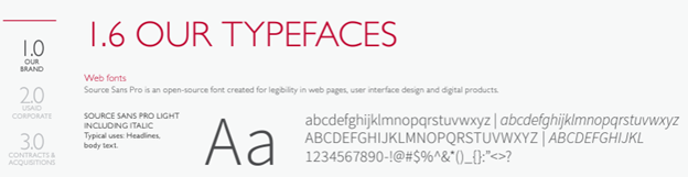 Snapshot from USAID’s Graphic Standards and Partner Co-Branding Guide showing the web typeface as Source Sans Pro Light